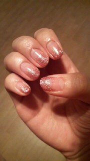 3ヶ月ぶりのネイルサロン~♪いや~粘ったよね、うん。節約節約と、自分でジェルネイルしたり、普通のネイル塗ったりを繰り返し、粘った粘った。今月は特別なので自分を甘やかすのだ!今回のサロンは初めてのところ。これまた「初回限定」のお得プライスにつられて・・・。私お得意の「初回荒し」!(ふふっ)仕上がりはこちら↓ラメはピンク系で、お決まりのラメグラデーション。やっぱり当然だけどプロ仕上げはぜんぜん違うーーー!そしてネイルが綺麗だと上がるーーー!見てると自分が癒される。その為の投資なのだ。(と、自己満足で納得させる)短めに仕上げてもらったから、1ヵ月半は粘るぞ~(苦笑)