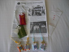 【2010年4月25日(日)・二日目】駆け足で参拝を済ませてしまった「ハワイ出雲大社」でしたが、お目当てのお守りはしっかりゲットできて良かった♪ハワイ出雲大社のニュースレターと御洗米も入れてくれました。(同じデザインで色違い。表と裏に置くとこんなデザインです。)このストラップになったお守りだけ「HAWAII出雲大社」という刺繍があります。他にもたくさん種類がありましたがこれ以外のお守りは「出雲大社」という刺繍だけだったので、恐らく日本の出雲大社のものと同じではないかと思われます。このストラップは、友達用(2つ)、自分用、そして母親用。今回、旅行前に珍しく母親からハワイ土産のリクエストがありました。母「なんか携帯につけるの欲しいわ。鈴が着いてるやつ。」 ↑ストラップという単語さえ知らない母私「いや、鈴が着いてるのはハワイにはないと思うよ・・・。まあ、適当になんか買ってくる」と言っていたのですが、これならお守りだし、鈴も着いてるし、ついでみたいに携帯ストラップだし(笑)母も喜んでくれることでしょう。赤いのは「縁結び」のお守り。ま、せっかくなんでね・・・。 (とか言いつつ、結構縁結びのご利益があるみたいで期待しちゃいます)緑のは「長寿」のお守り。母方の伯父伯母にとってもお世話になっていて、既に高齢な二人ですが、更なる長生きを願って・・・。みんなにご利益ありますように(祈)ハワイに出雲大社があることを知ったのは最近でしたが、行ってみて良かった。ハワイ旅行のたびに参拝できるといいな、と思いました。