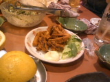 打ち込んだ日記が消えました気を取り直して、、、先々週のテニスで力が入りすぎちゃったのか、腕を痛めてしまいましたそれでも平気だろうと先週もスクールにどうにか1時間半頑張ったのですが、どうにも痛いこりゃダメだと、職場の中にある整骨院に直行!そうしたら・・・・・テーピング+湿布このところは週1のスクールしかやってないのに、テニス肘ですってまだ初級のくせに、情けない。。。何かをにぎったり重たいものを持つと痛いので、フライパンも洗濯バサミも無理!使い物にならないので、夜ご飯は池袋にgo!!東武でkouがお気に入りなのが、大阪串かつの『くし家』。ニ度づけおことわり大阪名物・いか焼きビリケンさま、願い事かなえてね整骨院で楽になったものの、月曜の仕事ではやっぱり痛みが・・・ファイルを持つのも、ホッチキスや鋏を使うのもしょうがないので仕事後に、またまた整骨院に行きました。そこで先生が「じゃ、これをやってみましょうか」と手にしていたのは、なんと、鍼!!痛くないから、と言われながらも、刺されればやっぱり痛い大騒ぎしてしまったので、他の患者さんに笑われてしまった。。。鍼を刺したことに動揺しながら家に帰ると、あれあれ??結構右手が使えるよ鍼ってすごい!完治はしてないけど、とっても楽になりましたそんなこんなで、火曜日は職場で送別会良くしてくれた社員の子が退職なので、内輪だけで「溜まったものを吐き出す会」です最近いろいろと事件(?)が多くてみんな溜まっていたので、盛り上がること!6時から12時過ぎまで、飲み続けです。私の飲んだビールはジョッキ6杯話の内容が衝撃的過ぎることばかりだったせいか、悪酔いしてしまいましたはあー、、、世の中、ほんとにいろんなことが起きてるんですねおかげで昨日は二日酔いで、ぐっでぐでな一日を過ごしてしまった。。。ここ何日かでぼろぼろの顔と体になってしまった気がするわふう。。。。。おまけ東武のお魚屋さんで、発見!新島の民宿で美味しかった、たかべ。東京ではほんとに高級魚なんですね。1匹500円!!閉店間際で値引きしていたので、購入です油が乗っていて、やわらかくて、美味しかったでも、高くてもう買えないな~。雑誌に出ていた肉巻きエリンギ見た目がこわいけど黒酢で味付けしているので、さっぱりしながらコクがあってでした。腕が痛いと言いつつ、日曜の朝ごはんにパンケーキ。クックパッドで見てすごーく気になっていたレシピ。 笑顔までとろけるパンケーキ by Taikostanzoその名の通り、とろける食感で!