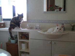 我が家に居る2匹の猫(三毛のメス、白のオス) この2匹の面白行動等を中心にしていきます。