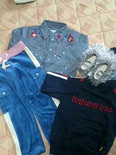 昨日は広島市内までお買い物に行ってきました~。何ヶ月ぶりかに自分の服を購入~!!やっと買えた~って感じです。今日は寒いしやる気もなく1日中家でごろ~んとしてます~。明日は今年最初の英語教室が始まるのですが一緒にレッスン受けてたお友達のママが2人目出産と言うことで・・・。しばらくこうちん1人でレッスンです~(*_*)どうなることやら・・・。年末年始は福袋を結局のところ8袋も買っちゃいました~。ということで今更ながらネタバレです!! 今年最初に楽天外のショップのきのこ堂さんで購入した福袋です~!!9点入ってかなりお得でした~!!着れないのもありそうですが・・・。またぼちぼち他のものもネタバレしていきま~す♪