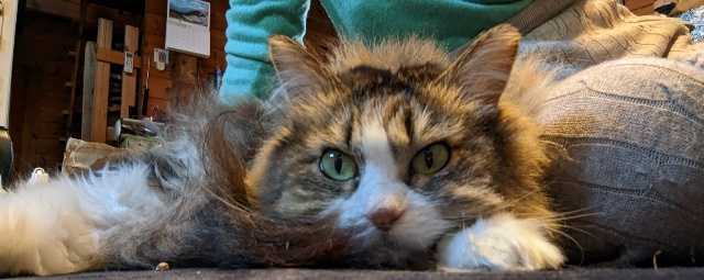 ホットカーペットの上にいるとすぐにショコラがやってきて べったりくっつきます。