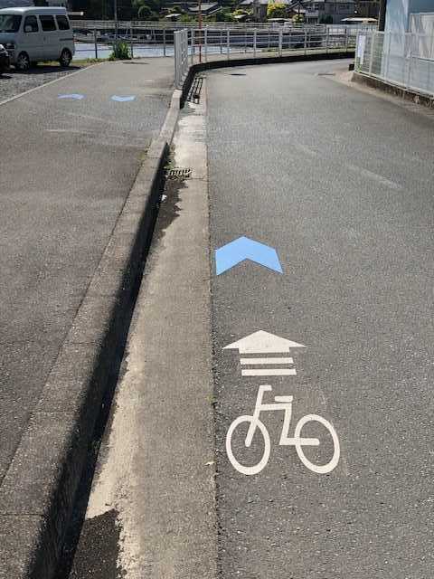こんな感じで青い矢印が書かれているところがサイクリングコースとなっています。