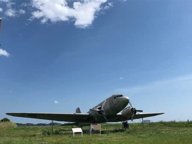橋を降りてちょっと行くと左側にDC-3という昔の輸送機が現れます。