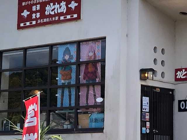 佐久米駅併設の喫茶「かとれあ」にリンとなでしこののぼりが!