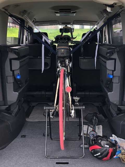 床のフックを使うよりも、カーブとかで車体が振られないので安心感があり、現地でさっと降車できるのも便利です。