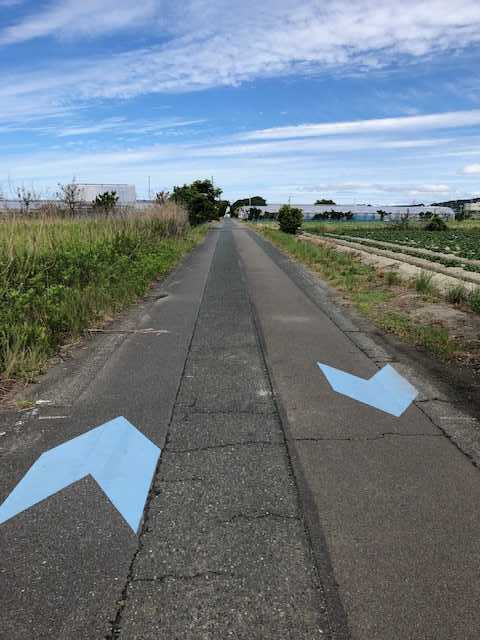本来であれば、潮騒橋を渡った後もず~っと海岸沿いを走るコース設定なのですが、こっち側も防潮堤工事で通行止めなので、内陸側へ迂回路が設定されています。