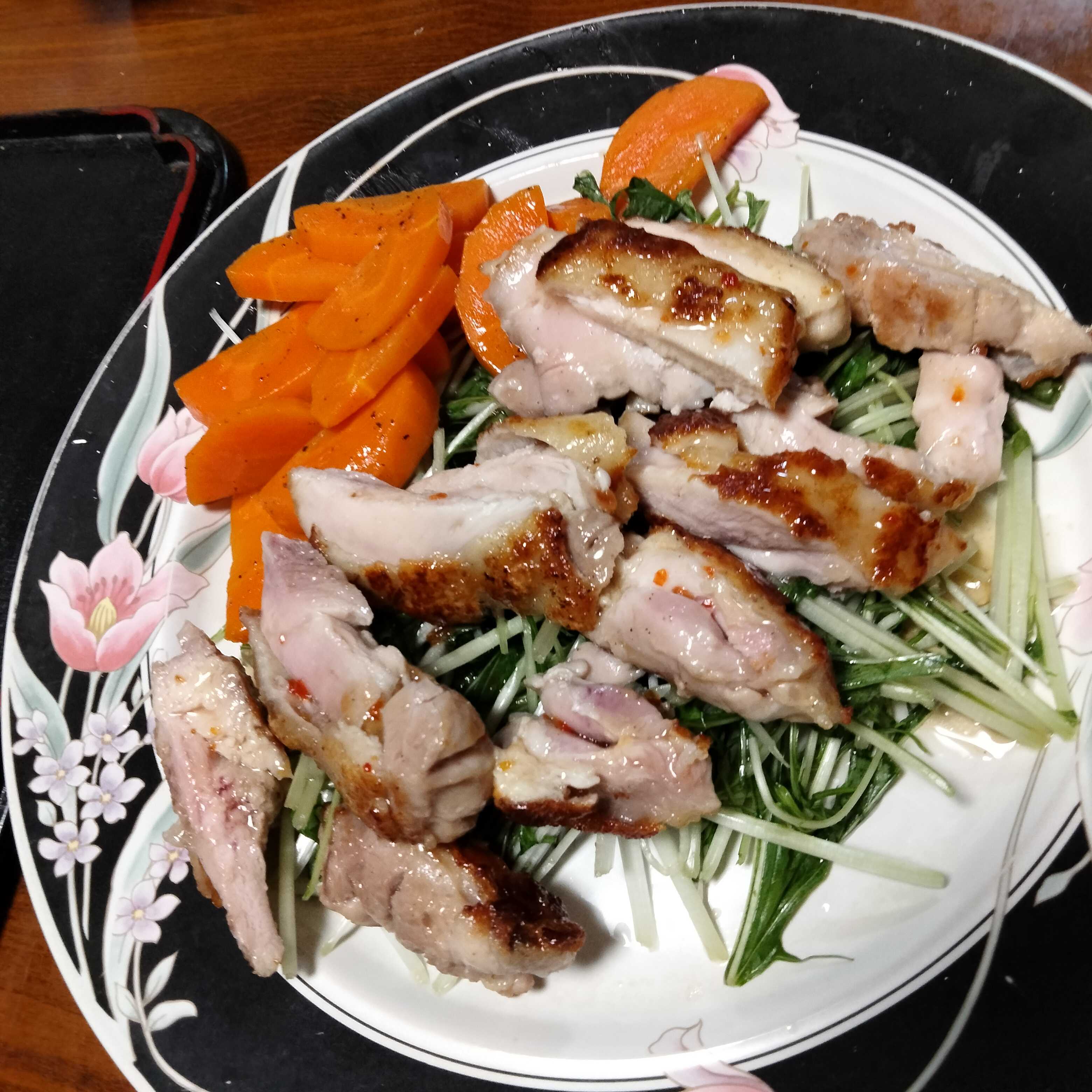 鶏のもも肉を蒸し焼きにしました〜私は肉の中で一番好きなのは鶏肉です安いからでも最近高くなってきた!!暑くて鶏も弱ってるから鶏の蒸し焼き
