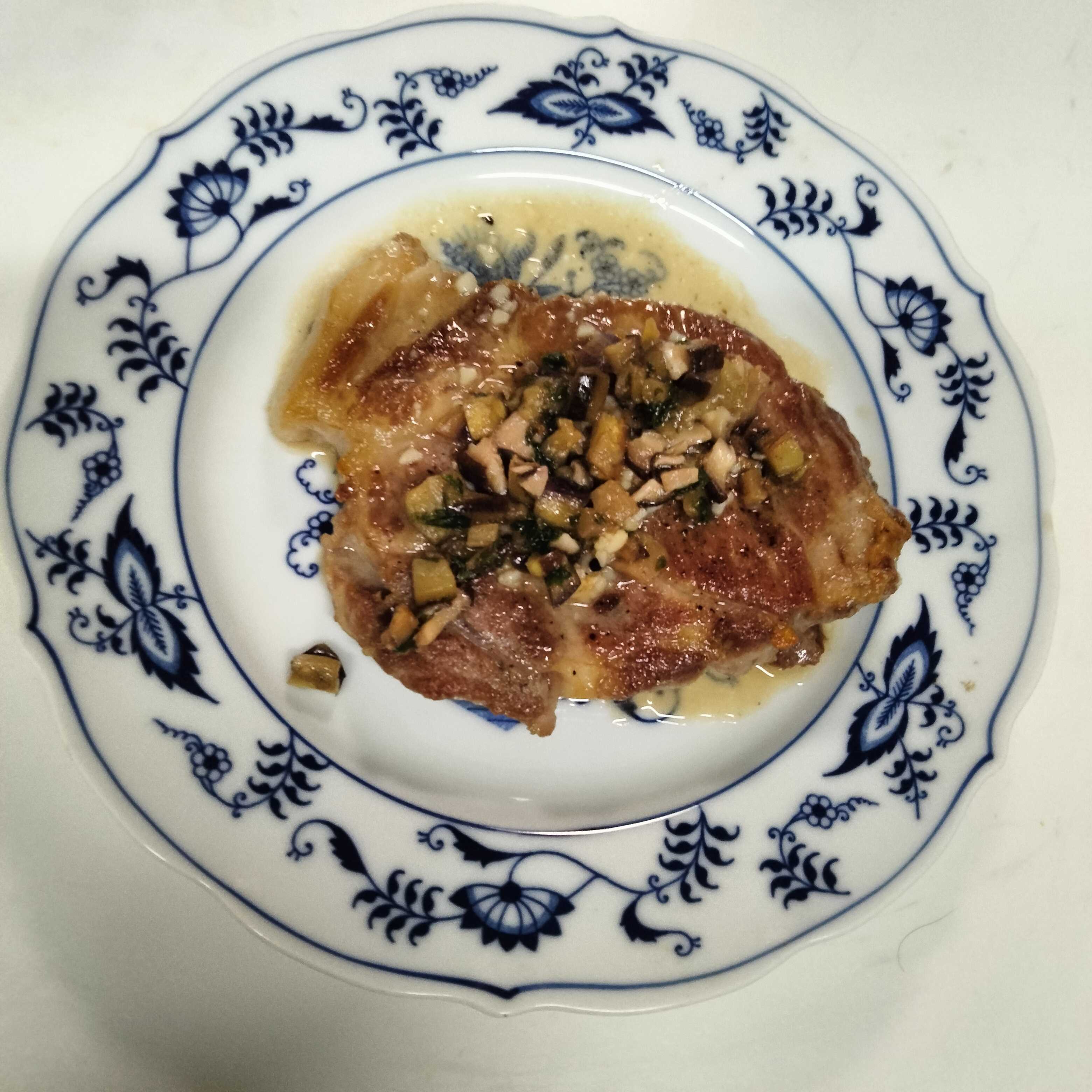 豚肉のソテーはよく作ります牛肉ほど高くないから作ったソースを上にかけますこの日のソースは何だろう?ニンニクとナスとしいたけを細かく切ってポン酢で煮込みました〜和風かなブログランキング