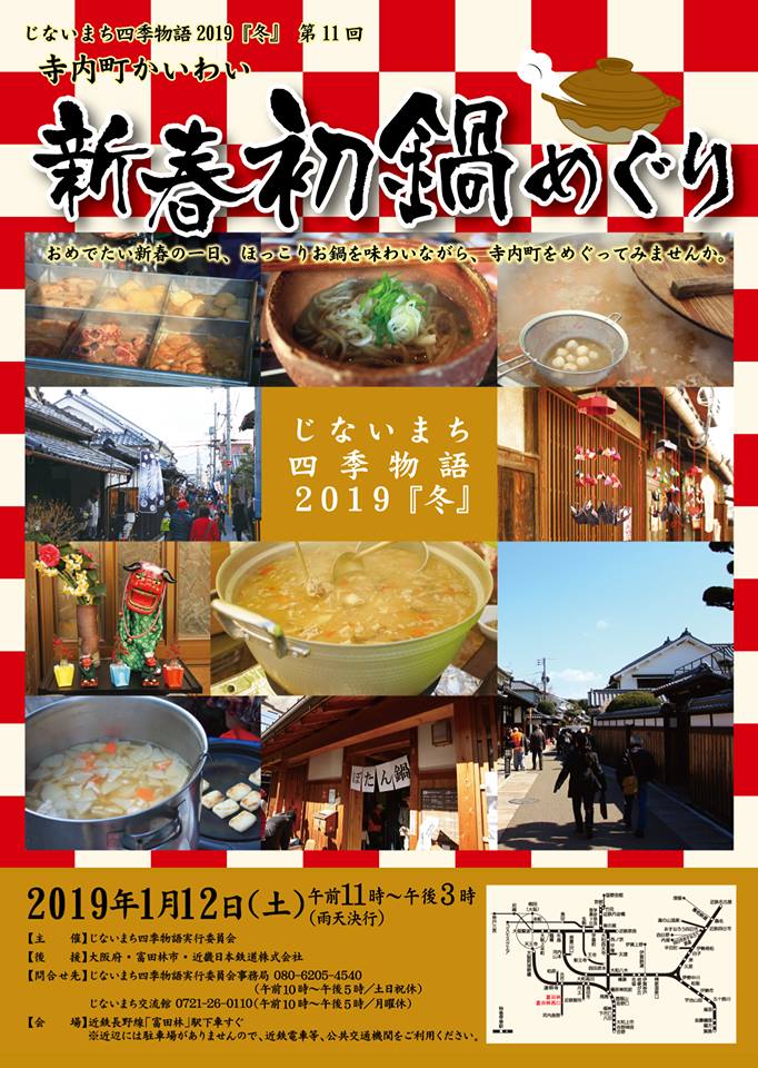 富田林じないまち「茶房 和 (なごみ)」は、 1月12日(土)と1月13日(日)と1月14日(成人の日)オープンいたします。各日とも午前11時から午後5時までの営業です。1月13日(日)・1月14日(成人の日)、ランチの予約も賜っています。0721-51-4050 までよろしくお願い致します。 ~~~~~~~~~~~~~~~~~~~~~~~~~~ 新しい年がはじまりました。皆様方には健やかにお正月を迎えられたこととお喜び申し上げます。「なごみ」におきましても、新年を迎え、なお一層努力して皆様方に可愛がられるお店になれるよう決意を新たにいたしました。 ~~~~~~~~~~~~~~~~~~~~~~~~~~ 1月12日(土)は、じないまち界隈「新春初鍋めぐり」のイベントが取り組まれます。勿論、「なごみ」も参加いたします。「なごみ」のメニューは「ワンタンスープ」です。一杯¥150円で提供いたします。100食限定ですのでお早めにお越しください。 100食に達しましたら、カフェタイムに切り替えて営業いたします。 ~~~~~~~~~~~~~~~~~~~~~~~~~~ 1月13日(日)・14日(成人の日)は、通常の営業になります。この日のランチメニュは、「なごみ」特製の「包みハンバーグ」になっています。正統の手作りハンバーグをお出しします。「肉汁」と「なごみソース」の「絡み味」をお楽しみください。 ~~~~~~~~~~~~~~~~~~~~~~~~~~