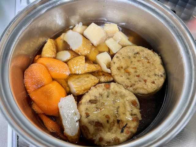 ★ 7月23日(水) 🌞 ★今日は(も)朝から暑いね~~~ι(´Д`υ)アツィー午後から自転車で”ビュ~~~ン!”3つのスーパーで買い物を済ませて・・・今日は1週間ぶりに旦那君が大阪から帰ってくるのでちょっと真面目に夕食の準備●━ヽ(´∀`★) お料理開始~~~♪旦那君のリクエストで『がんも煮』ついでに明日の夕食用の『さつま揚げの煮物』も一緒に煮ました味付けは同じだからね( *´艸`)フフフ↑を煮ている間に『とんかつ』を作って(今日は食べないので冷凍保存用)「バッター液」&「パン粉」が残ったので冷蔵庫にあった「鶏むね肉」「ウインナー」「サンドはんぺん」も「パン粉」をつけて冷凍保存しました『サンドはんぺん』フライパンで両面焼いて『千切りキャベツ』はキャロトモ愛用(?)の≪スーパーベジタリアン スライサー≫で”シャカシャカ”スーパーベジタリアン スライサー『豚の生姜焼き』ビニール袋に「生姜焼き用の豚肉」を入れて小麦粉を軽くまぶしてフライパンで焼いてお皿にとって「玉ねぎ」「パプリカ」を軽く炒めて豚肉を戻して味付けは生姜・にんにく・料理酒・みりん・根昆布だし・しょうゆちょっと炒めてできた~~~\(^o^)/旦那君が帰ってきてφ_(*^▽^*)_ψいただきま~~~す(๑´ڡ`๑)オイシイ~~~♪*********************ブログランキングに参加中ですよろしかったら↓を“ポチッ!”してね♪ ☆★☆琴&鈴ちゃんニット☆★☆☆★☆ 旅行日記 ☆★☆☆★☆ お散歩日記 ☆★☆