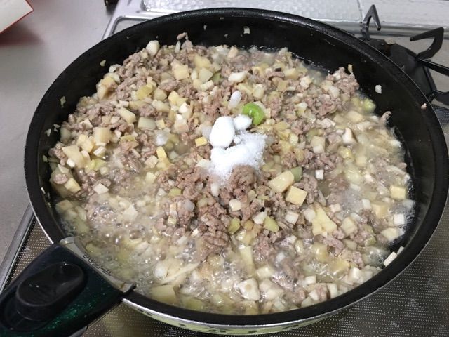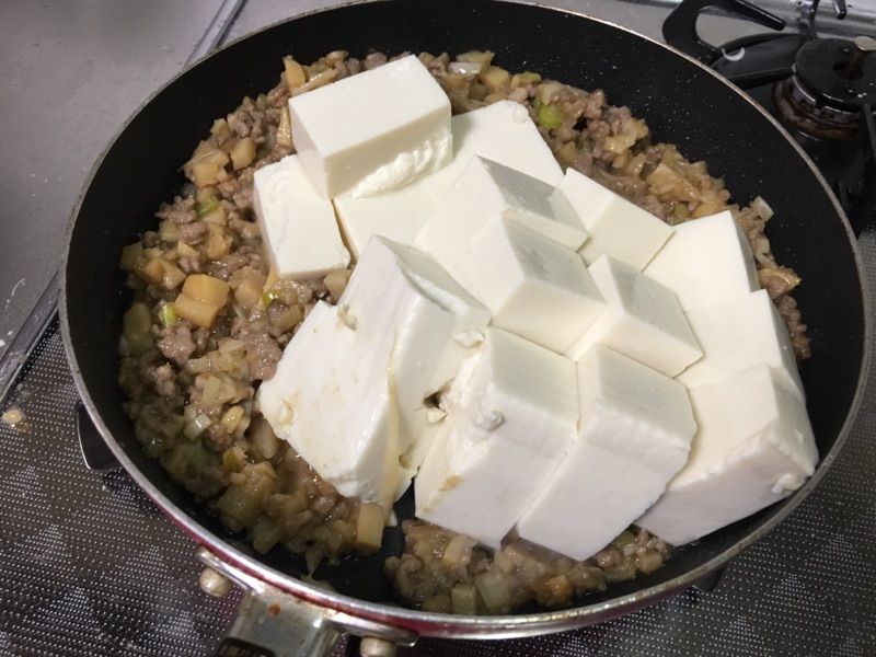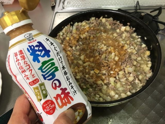 なじんだら 味噌も入れる 味が濃いくらいが ベストです (豆腐を入れるから) |