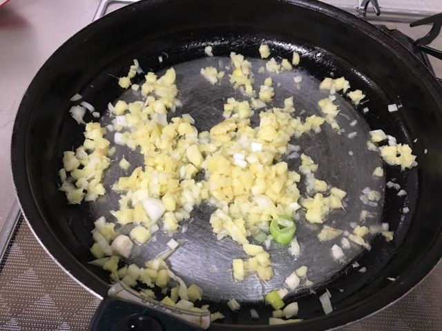 フライパンにサラダ油を敷いて ショウガ&ニンニクを 香りが出るように 弱火で炒める |
