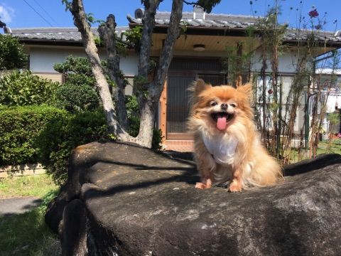 | パパ&おばあちゃんは 用事があってお出かけだったら あたしとママは お留守番しました お庭でいっぱい遊んだの~~~ |