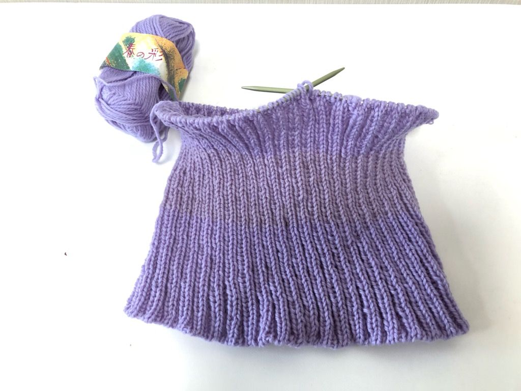 1玉目の毛糸と一緒に保存していた毛糸で編んで