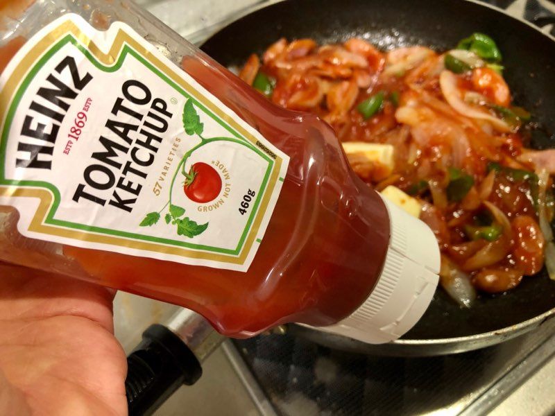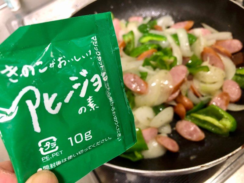 調味料は「アヒージョの素」「ケチャップ」「バター」