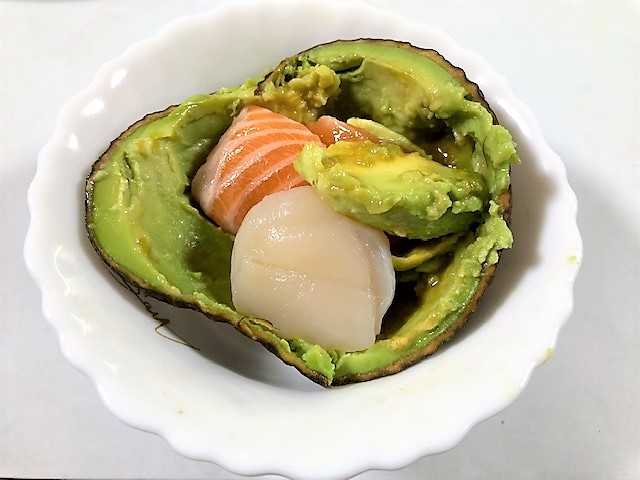 「ホタテ」&「サーモン」の刺身を混ぜて