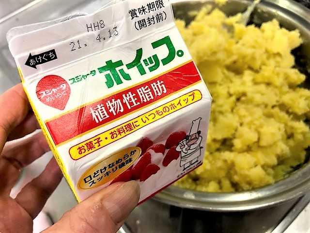 「バター:60g」「砂糖:適量」「生クリーム:100㏄」を入れて