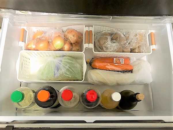 野菜室とカゴ類の下には