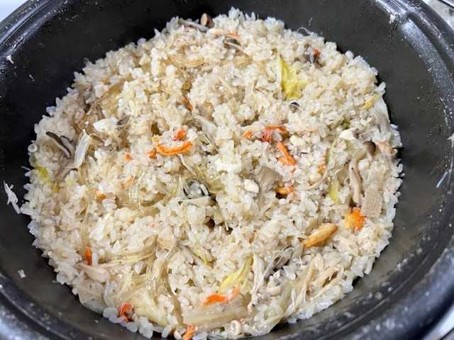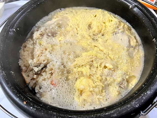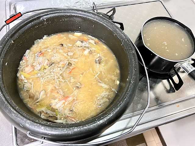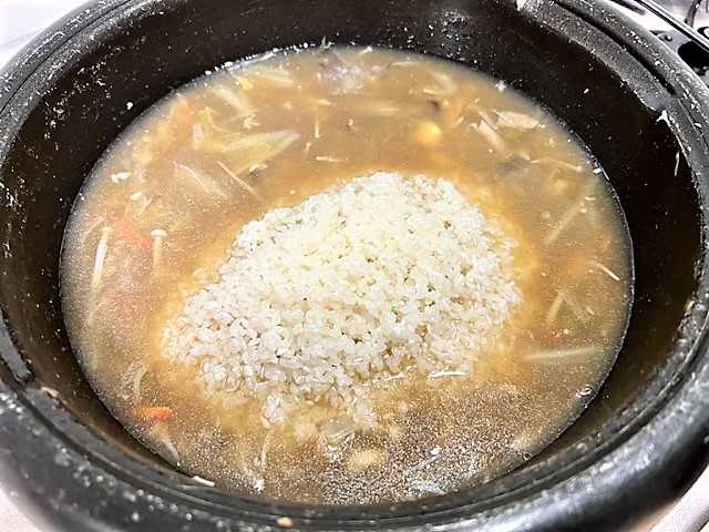 残しておいた『炊き込みごはん』に別鍋のスープを入れて