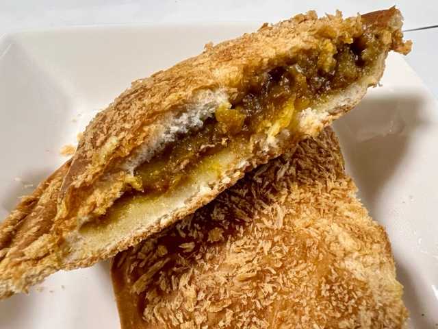 ぺちゃんこになっちゃったけど中のカレーも熱くて