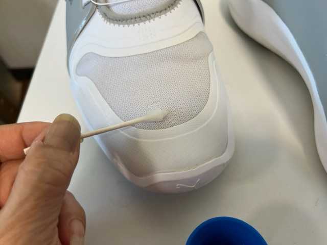 靴のまわりの合皮の所に「漂白剤」が付くと