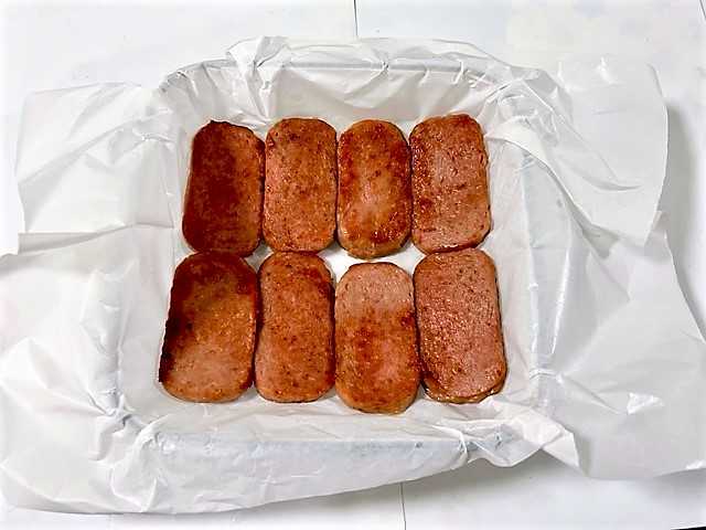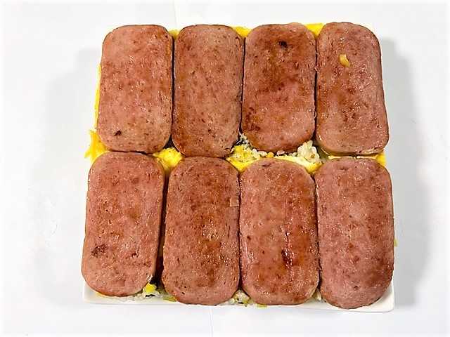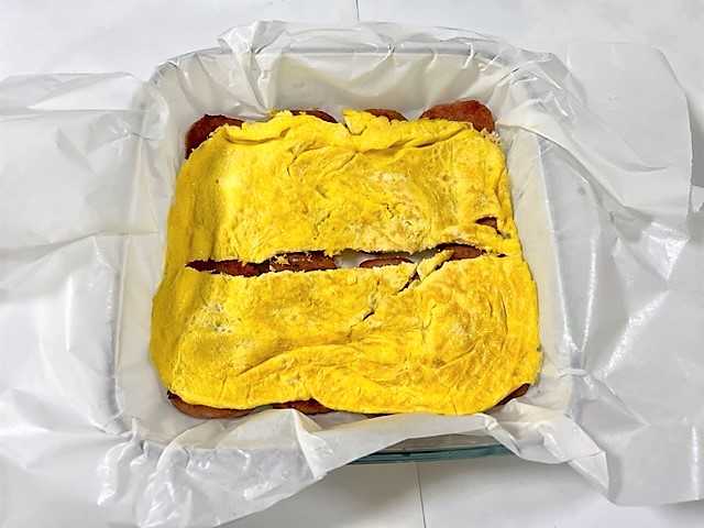 「スパム」「薄焼き玉子」「ごはん」の順で入れて
