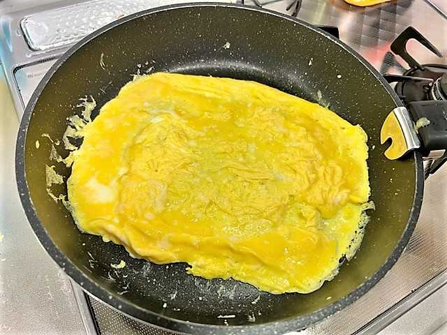 「玉子」3個で「薄焼き玉子」を四角く焼いて
