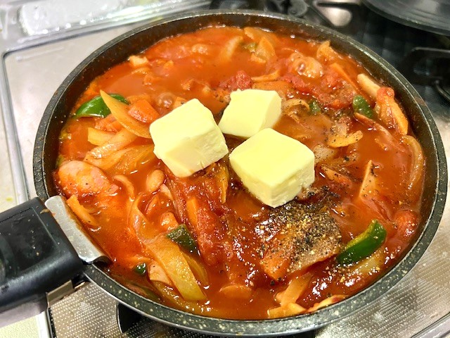 仕上げにバター&コショウで味を整えて
