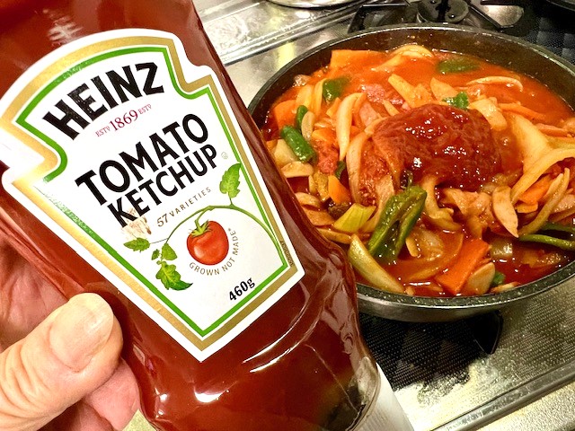 白ワイン(料理酒でもOK)ケチャップ・コンソメで