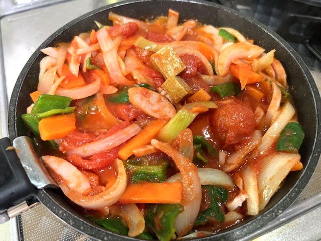 (ごはんを入れたらオムライスのケチャップライスにもなる)