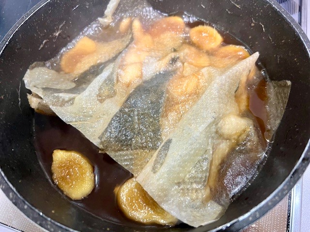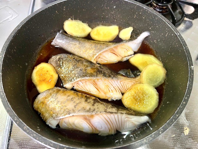 煮汁(料理酒・みりん・砂糖・醤油・生姜)で
