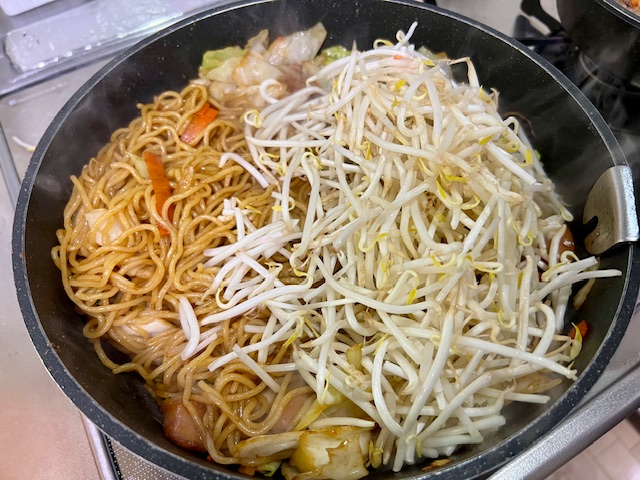 「もやし」も入れて軽く炒めて出来上がり~~~