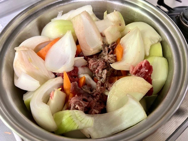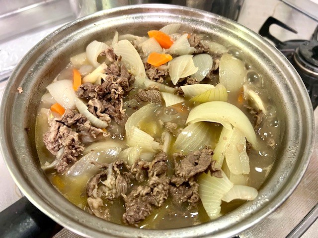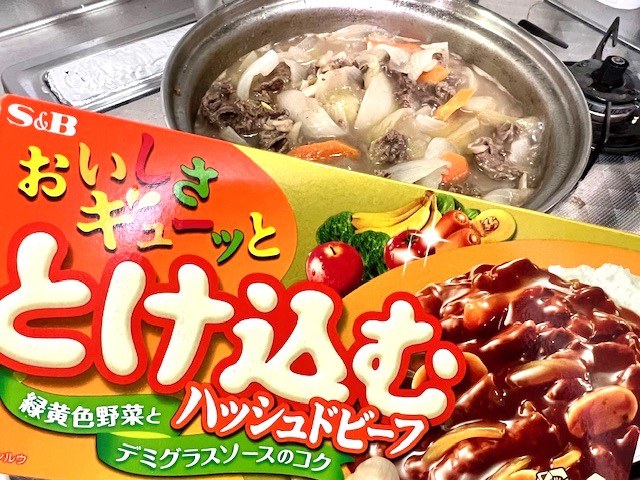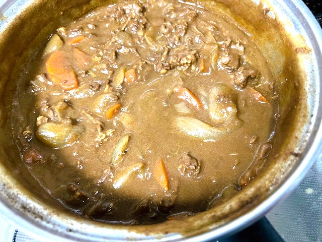 具材を炒めて水を入れて煮てルーを入れてちょっと煮て・・・
