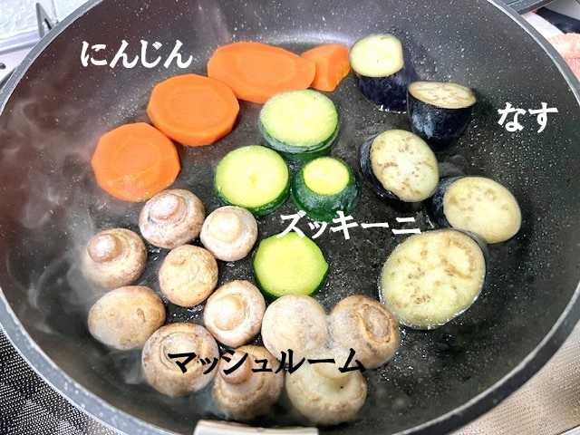 なす・ズッキーニ・マッシュルーム・にんじん(下ゆでした)は