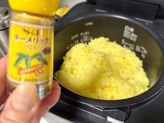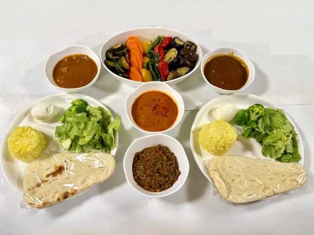 プレートに『サラダ』『ナン』『ターメリックライス』