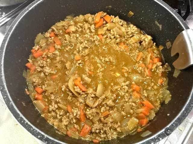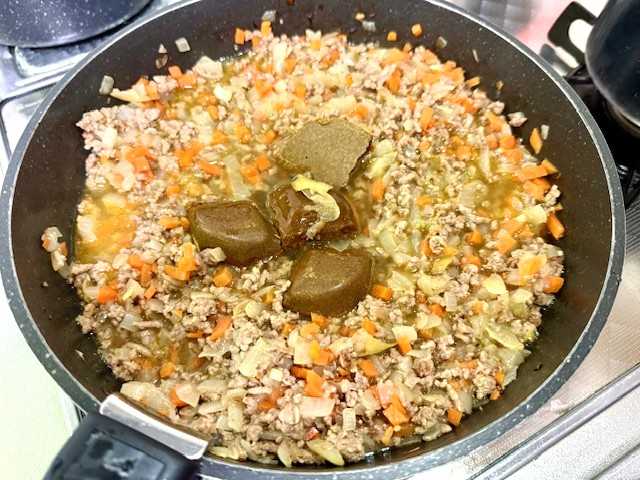いつもは「キーマカレーのルー」を全部使って作るんだけど