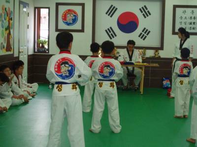 夏休みに入って初めての練習。冬休みは途中から入ったので、毎日道場まで連れて行っていました。帰りは一番最後だったのですが。。。。夏休みは家の下まで迎えに来てくれるので、安心です。昨日夏休みの計画表を持ってきました。プールに1回、ヌンソルメ(雪ソリ場?)1回、2泊3日の徹夜徒歩、8月末の昇級審査と計画が立ててありました。韓国は小学校にプールがないので、夏休みもプールに行くか?海水浴場に行かない限り泳ぐことも出来ない。普段は家の庭でビニールプールで水遊びくらいしか出来ない。だからプールにいけるのなら、送るしかない。長男は徹夜徒歩だけは参加したくない!と言っているが、私も旦那もこれだけは参加させたい。2泊3日で2町隣のポルキョから道場まで歩いて帰ってくる予定。日本でも歩いて日本1週する人とかいると思う。私のいた四国は四国88箇所のお寺があるので、歩いて回る人も見かける。最近はバスで何回かに分けて、88箇所をお参るする人もいる。母もバスで回った一人です。親戚のおじさんは車で回りました。韓国も夏には良く数人で歩いて韓国を1週する学生達がたくさんいます。昨日も車で歩いているお兄ちゃんたちを見かけました。中には女の子もいます。長男も参加して、達成する喜びや自身をつけてくれたらと思っていますが、どうなることか???まだ時間があるので、少しずつ説得するつもりです。食事の件があるので、オンマ達が交代で見に行ったり、差し入れを持って行ったりするようです。昇級審査も帯が変わるより、最優秀選手にもらうトロヒィーが欲しいようです。これは熱心に練習する子供たちにもらえるようです。今年の夏は来年から始まる英語の準備もしないといけないので、去年よりは勉強に力を入れないと。。。。午前中、涼しい時に集中して勉強して、午後はテッコンドーや水遊びの予定です。何時まで計画通りいくか?分からないけど頑張れ!!