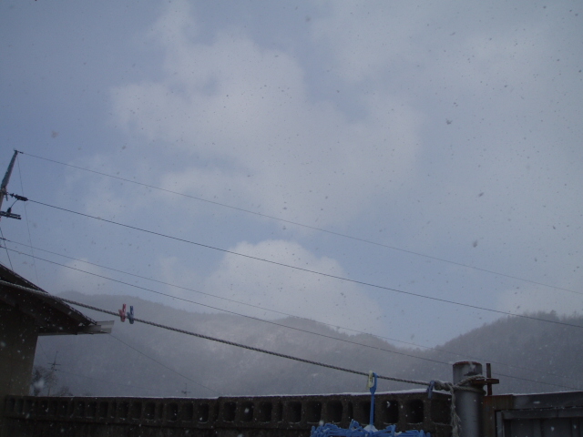 昨日までは秋のように暖かかったここですが、今日は打って変わって朝から雪になりました。昨日まで日中気温が15度くらいあったのが、一転して1~2度です。昨日の夜から風が出てきて、ゴーゴー。ピューピュー朝起きたときは、屋根にうっすら積もったくらいで、無かったのですが起きてから雪がずっと降っています。あまり上手く取れなかったのですが、大きなボタン雪が降っていました。今日は長男の終業式。学校のスクールバスは大型なので、このくらいの雪でも平気です。保育園組みは小さいボンゴ車が来るのでどうかな?と思っていたら30分くらい遅れて来ました。保育園組みも明日には終業式なので送らなくても良いのだけれど、やはり送ったほうが静かでいいですから送りました。長男は今日から2月6日まで40日間の長い冬休みに入ります。帰ってきた長男ですが、成績表がありません。2学期にもあったと思ったんだけど。。。。。もらってきたのは冬休みの宿題の書いたプリント、EBSの2年生のプログラムのある時間の表、そしてクラスの友達の名簿。長い長い冬休みだけど、計画を立てないとあっという間に終わってしまうので、1日の計画、40日間の計画を立てて、過ごさせようと思います。年末、年始は団子たちがいるのでにぎやかになりそうです。でも日本のようにお参りに行ったりしないので。。。。。韓国は旧暦で正月を祝うので、あまりお正月と言う感じではありません。昼ごろには太陽も出てきたので、雪もすぐに解けそうです。