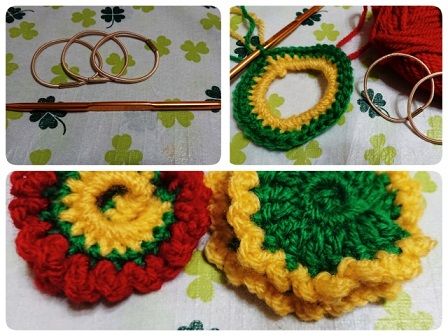 私もあり合わせの毛糸でクリスマスっぽく作ってみました。