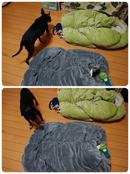 室温が23度になっていてワン達は寒いみたいで