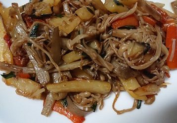 かさましにジャガイモ1個とえのき茸1袋を使い