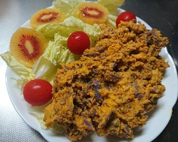 これは人用のさつま芋とカボチャのサラダ。