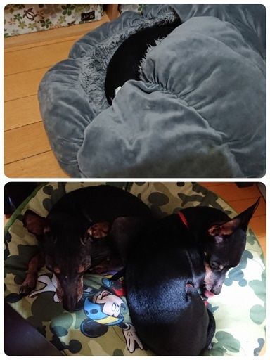 ルークとレイアはテーブル下のクッション。