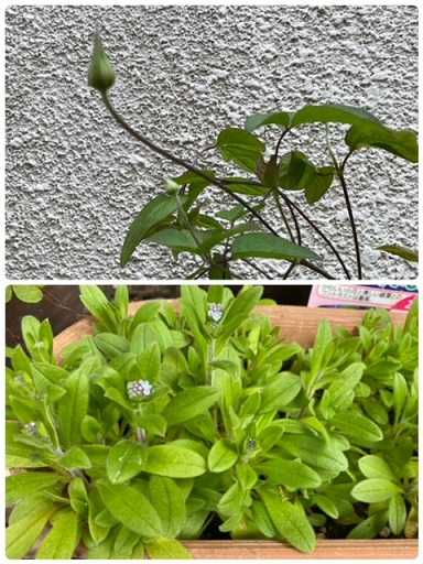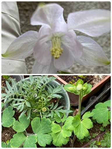 水道管がある壁と塀との隙間に生えているオダマキ。
