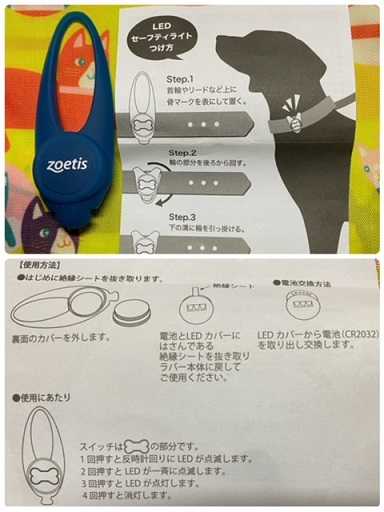 首輪に装着できるLEDのセーフティライトもいただきました。