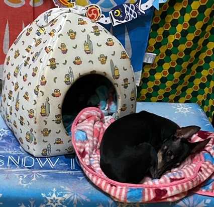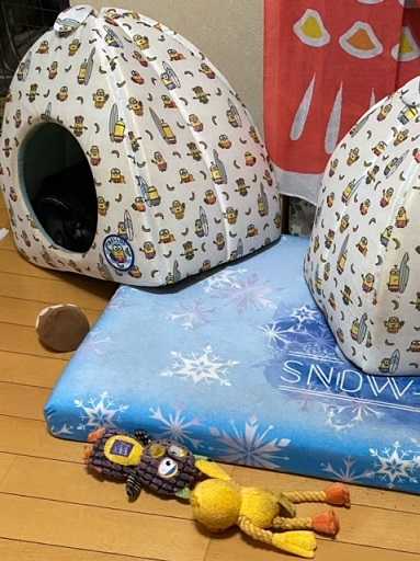ドームにはブランケットを入れ込んでレイアが寝ています。