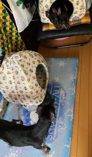 カーテンを開けてワン達のマット等を設置するのですが~