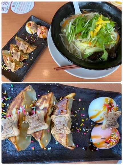 餃子にはチョコソースが掛かっていてコアラのマーチをトッピング。