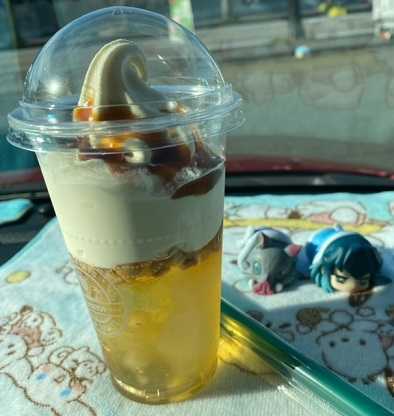 さらにキャラメルソース掛けのソフトクリームが乗っています。